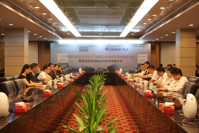 11月5日,家電行業(yè)首家SGS認(rèn)可EMC無線測試實(shí)驗(yàn)室授權(quán)儀式暨智能家居戰(zhàn)略合作伙伴授牌儀式在珠海舉行,格力電器獲得通標(biāo)標(biāo)準(zhǔn)技術(shù)服務(wù)有限公司(SGS)認(rèn)可授權(quán)的家電行業(yè)首家電磁兼容(EMC)無線測試實(shí)驗(yàn)室資質(zhì)。格力電器副總裁黃輝、SGS消費(fèi)電子產(chǎn)品事業(yè)部中港區(qū)總監(jiān)關(guān)俊超等出席授予儀式。