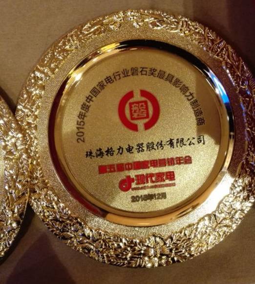 2015年這一年,格力獲得了眾多殊榮: 1月9日,格力電器 “基于掌握核心科技的自主創(chuàng)新工程體系建設”項目榮獲國家科學技術(shù)進步獎;5月初,格力電器大步挺進全球500強企業(yè)陣營,位居“福布斯全球2000強”第385名,排名家用電器類全球第一位; 9月23日,格力光伏直驅(qū)變頻離心機組獲得英國RAC制冷行業(yè)大獎(RAC Cooling Industry Awards)——年度國際成就大獎;10月,格力電器 “空調(diào)設備及系統(tǒng)運行節(jié)能國家重點實驗室”順利獲批科技部第三批國家重點實驗室;11月,格力被評為“2015年度最具世界影響力的中國品牌”……“中國家電行業(yè)磐石獎最具影響力制造商”頒給格力可謂實至名歸。