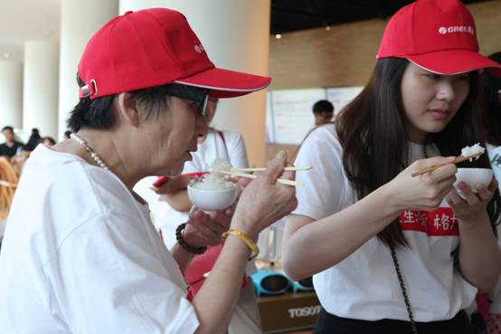 格力工作人員現(xiàn)場給老用戶們演示了晶弘冰箱的“瞬冷凍”技術(shù),讓從冰箱中取出的冰水瞬間化為冰沙,讓圍觀的老顧客不由的驚嘆出聲,大贊神奇。老用戶們還品嘗了今年兩會期間最新推出的大松IH電飯煲蒸煮出來的米飯。