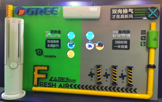 “格力空氣G密所”展示的格力雙向流新風換氣技術則創(chuàng)新突破了行業(yè)技術瓶頸——它可以模擬人體呼吸方式,主動“呼”出室內多余的CO2和含有甲醛的污濁空氣,同時“吸”入室外新風,通過“呼”與“吸”雙向渠道完成室內空氣換新,打造清新呼吸環(huán)境。此外,格力新風空調還內置了HEPA過濾網(wǎng),可以有效過濾掉室外新風中的PM2.5等顆粒污染物,進一步保證呼吸健康。