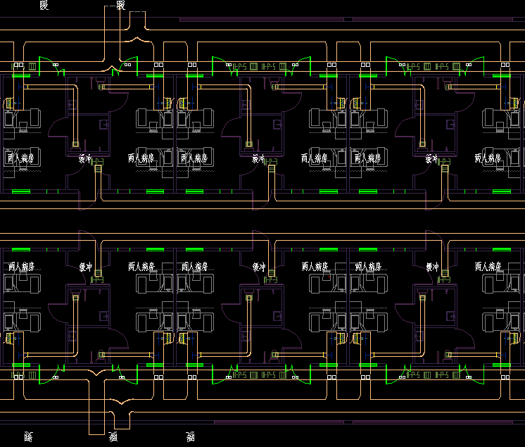 2. 醫(yī)護(hù)區(qū)可分潔凈區(qū)(含中央潔凈通道及其相連通的潔凈房間)和半污染區(qū)(通向隔離病房的走道及連通的房間),保證氣流從清潔區(qū)→半污染區(qū)流動(dòng)。